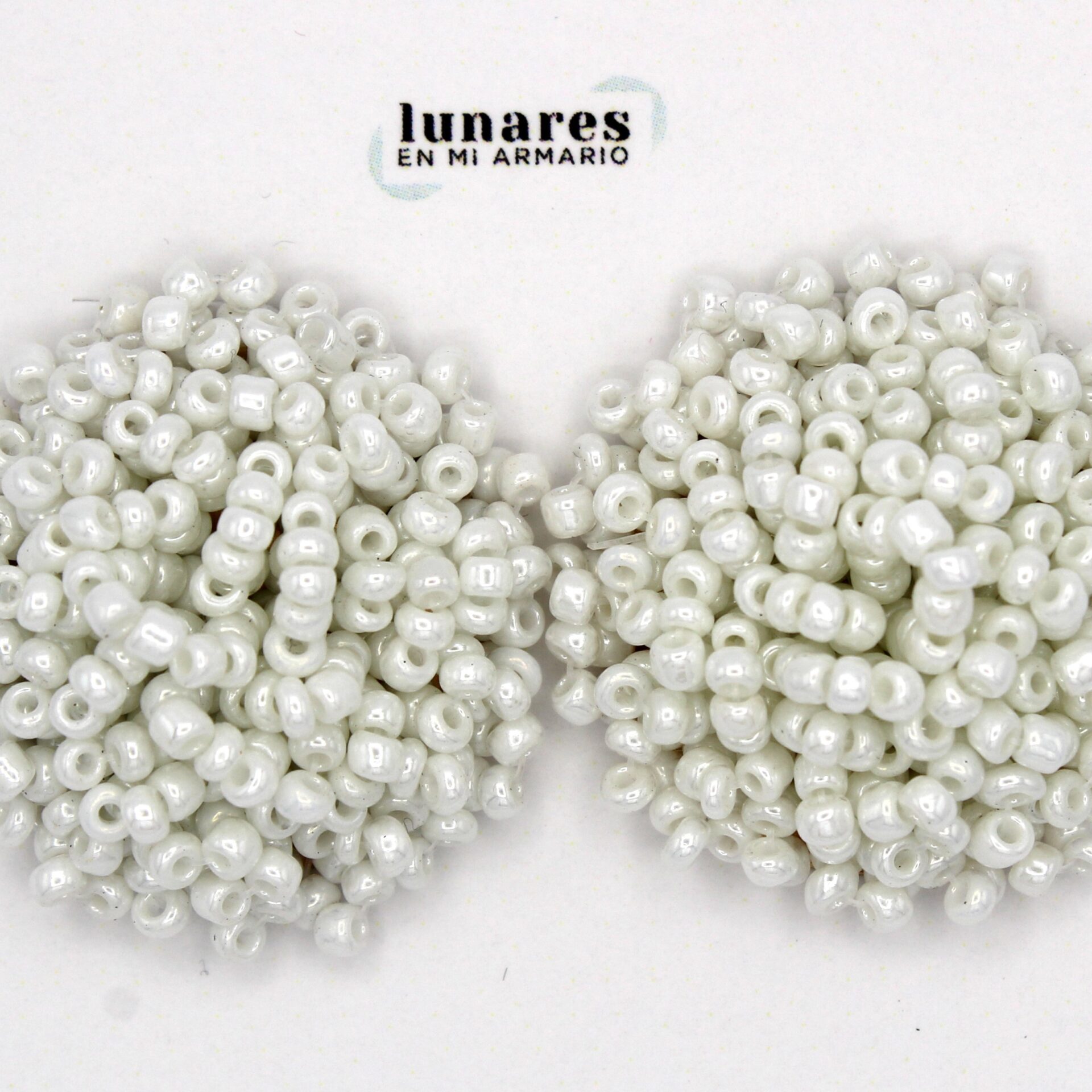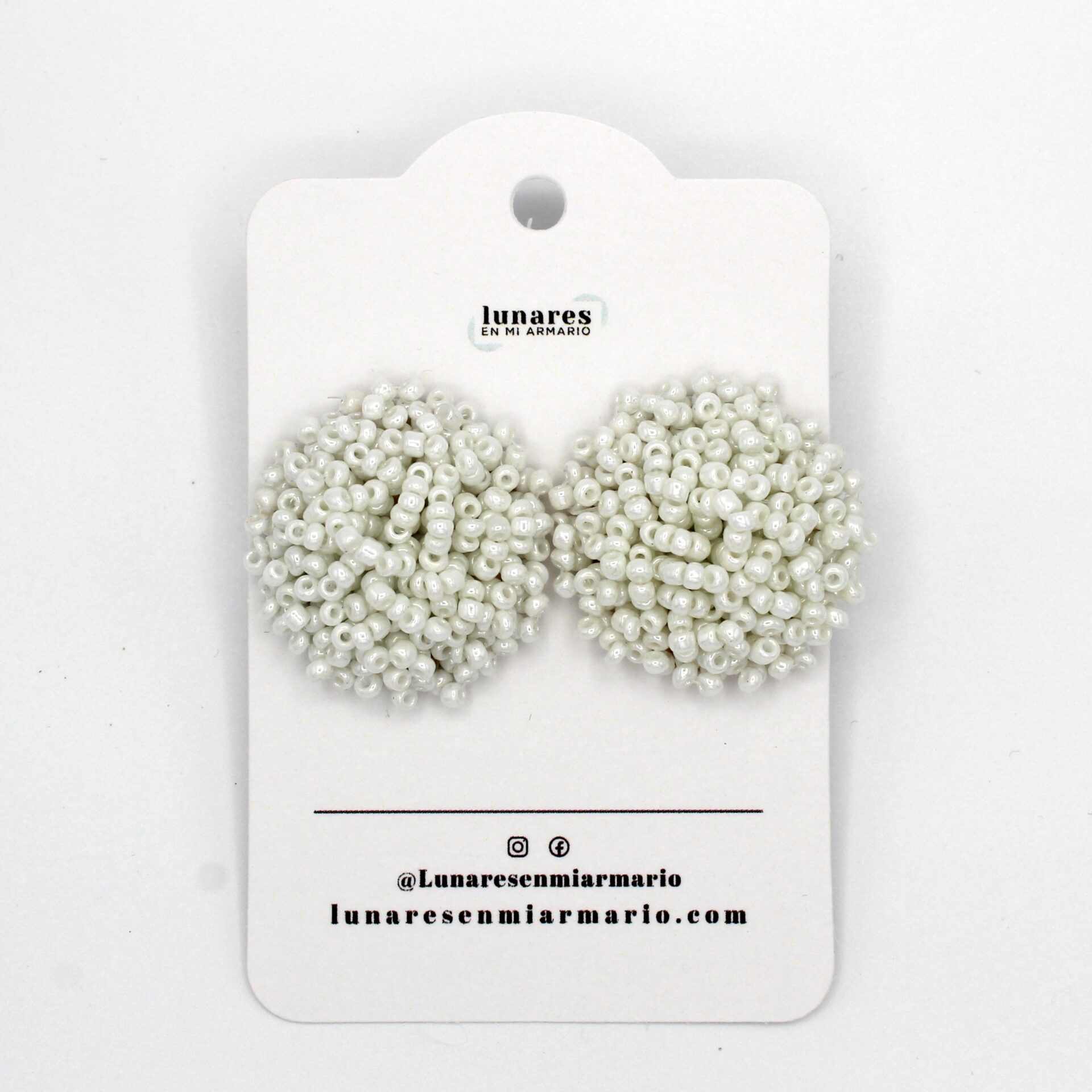 Pendientes circulares de abalorios blancos.