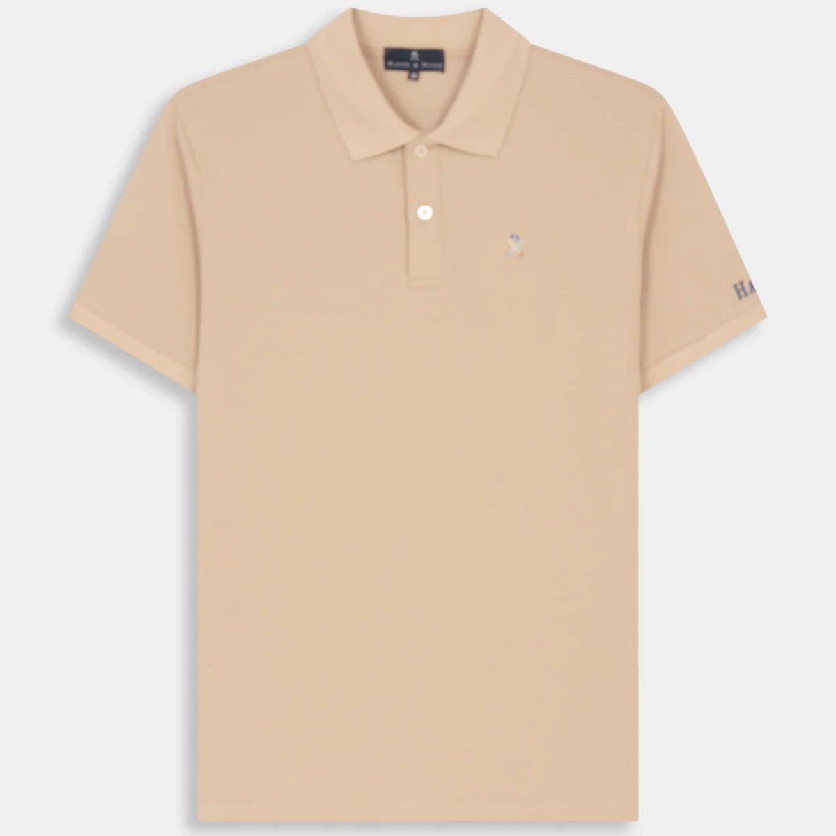 • Acabados: Cuello de canalé estructurado, tapeta de tres botones y bordado HandN de alta densidad