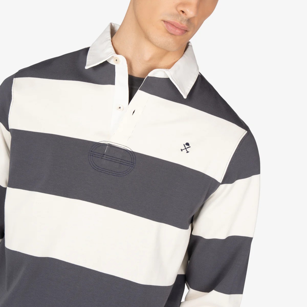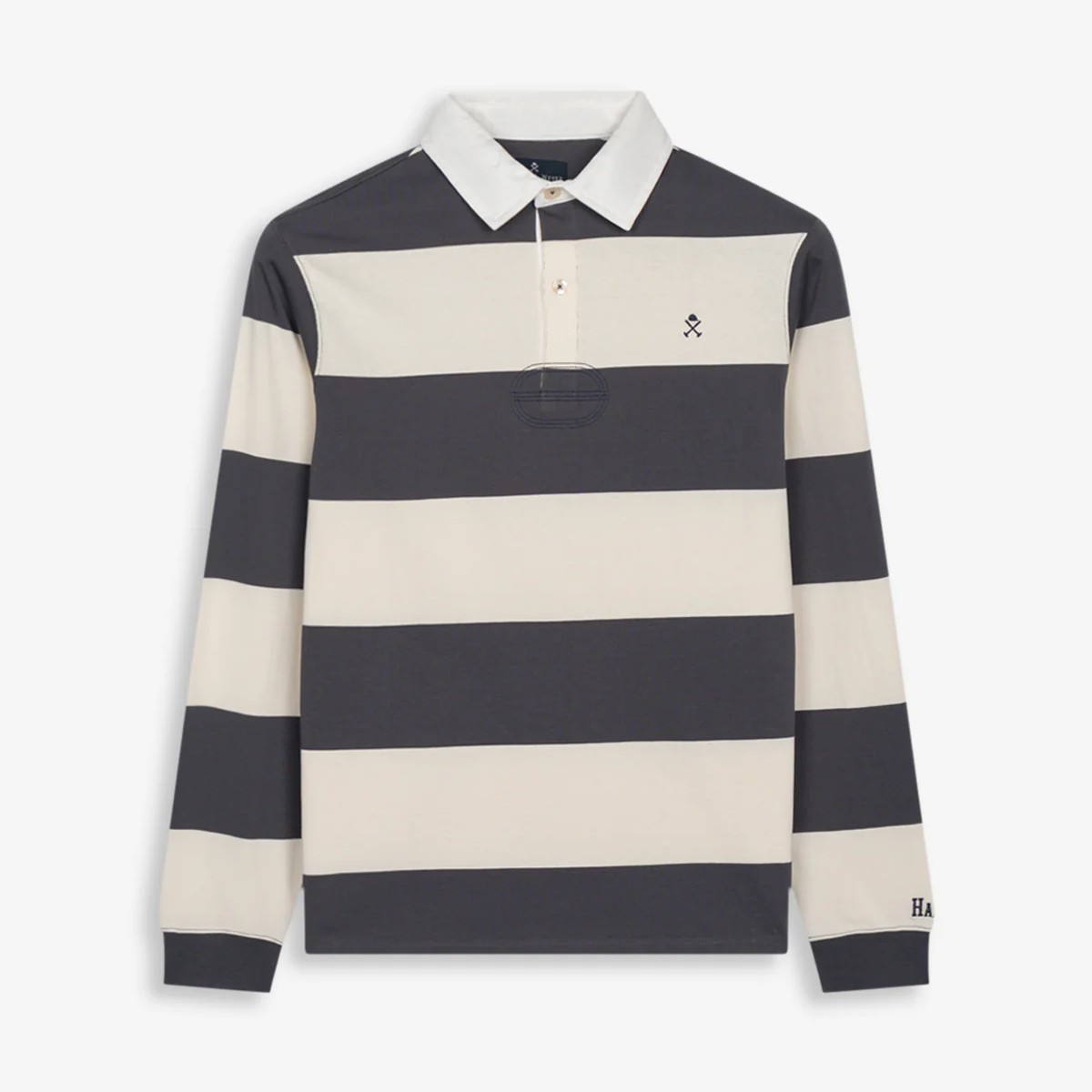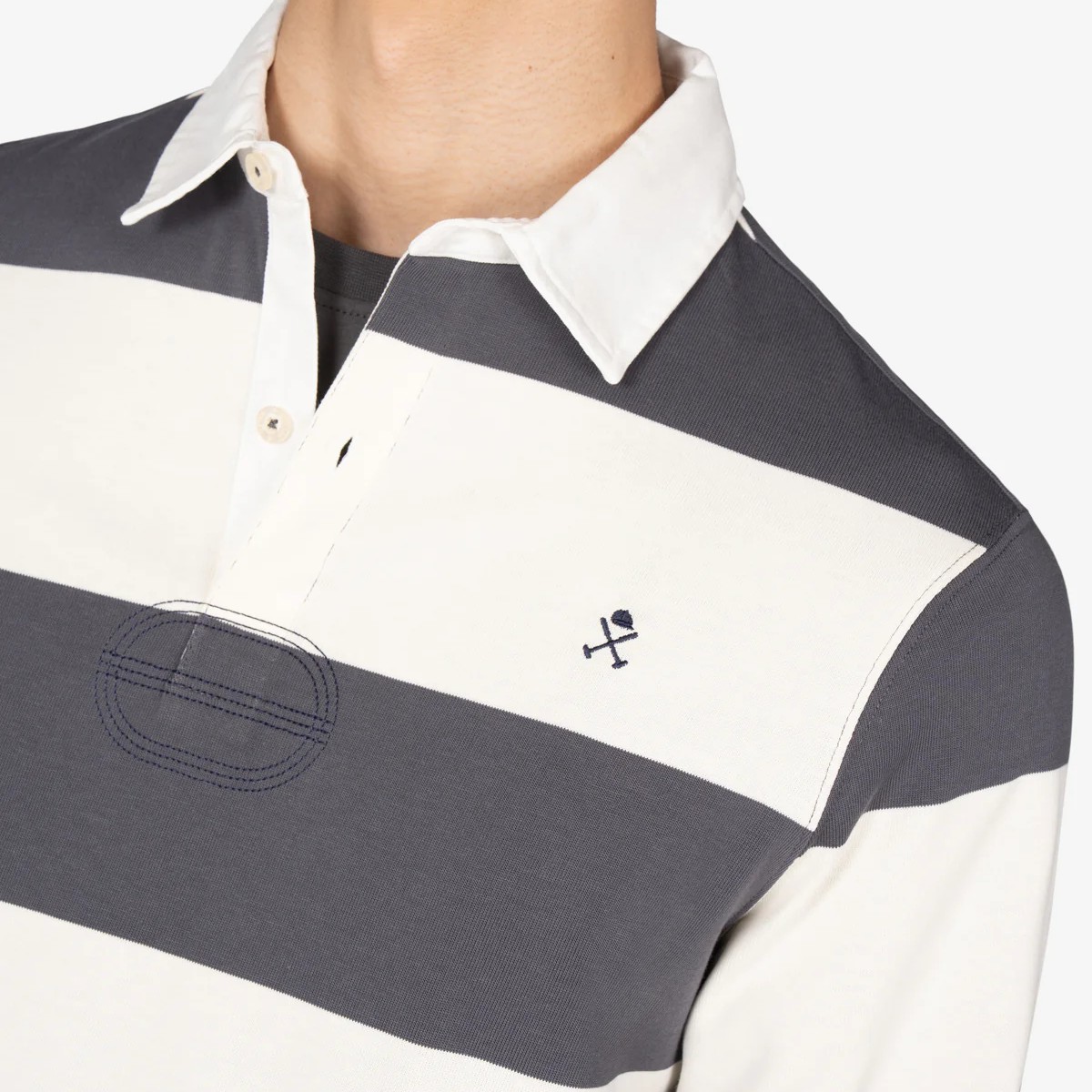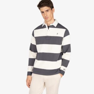 Polo azul marino de manga larga de rayas