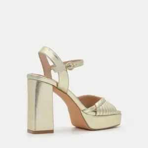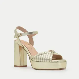Esta sandalia de tacón con plataforma es la elección ideal para brillar en ocasiones especiales sin renunciar a la comodidad. Su diseño elegante con tiras plisadas en la pala aporta un acabado sofisticado y femenino, perfecto para convertirte en la Invitada perfecta en bodas, celebraciones y eventos importantes.