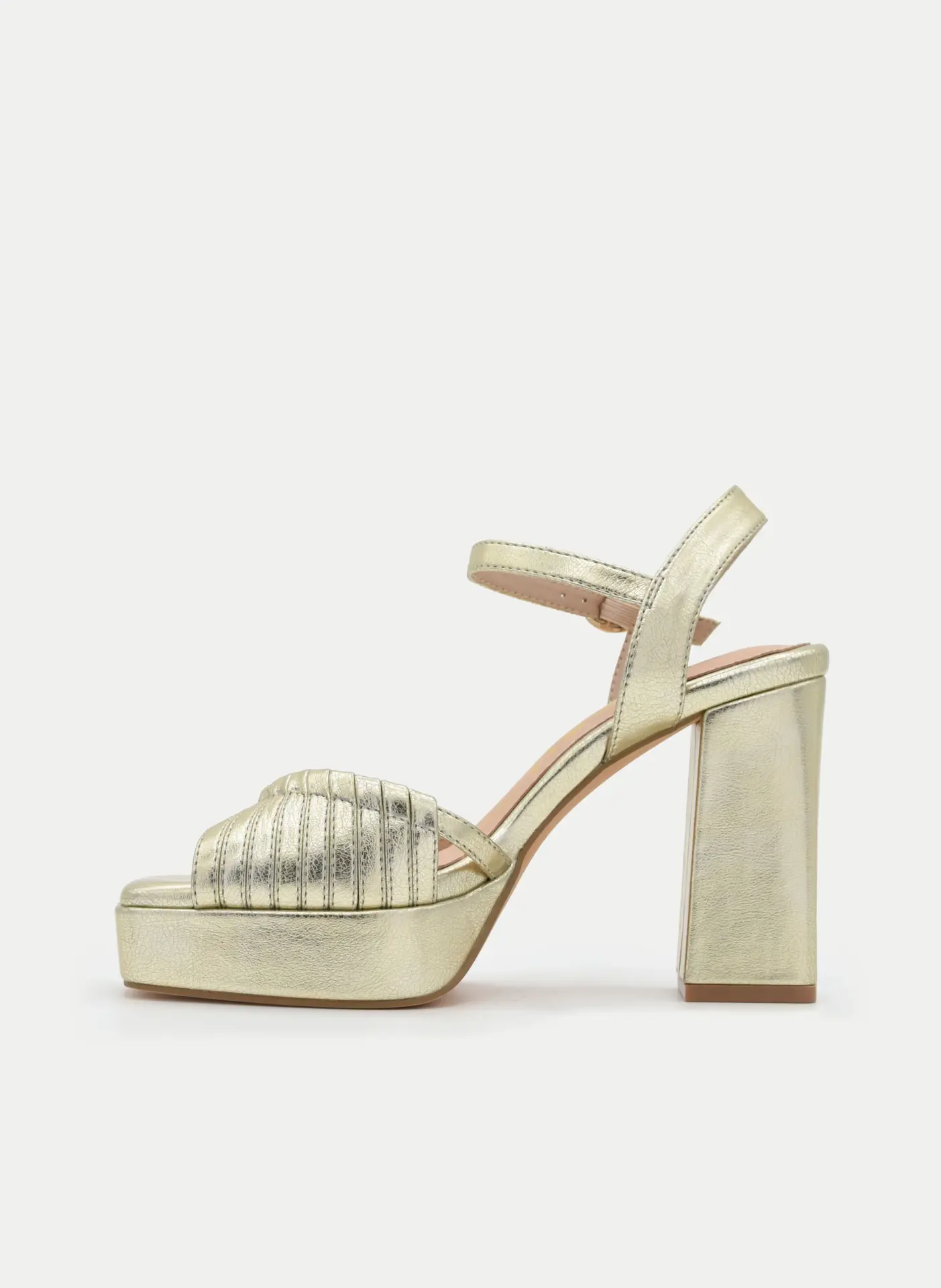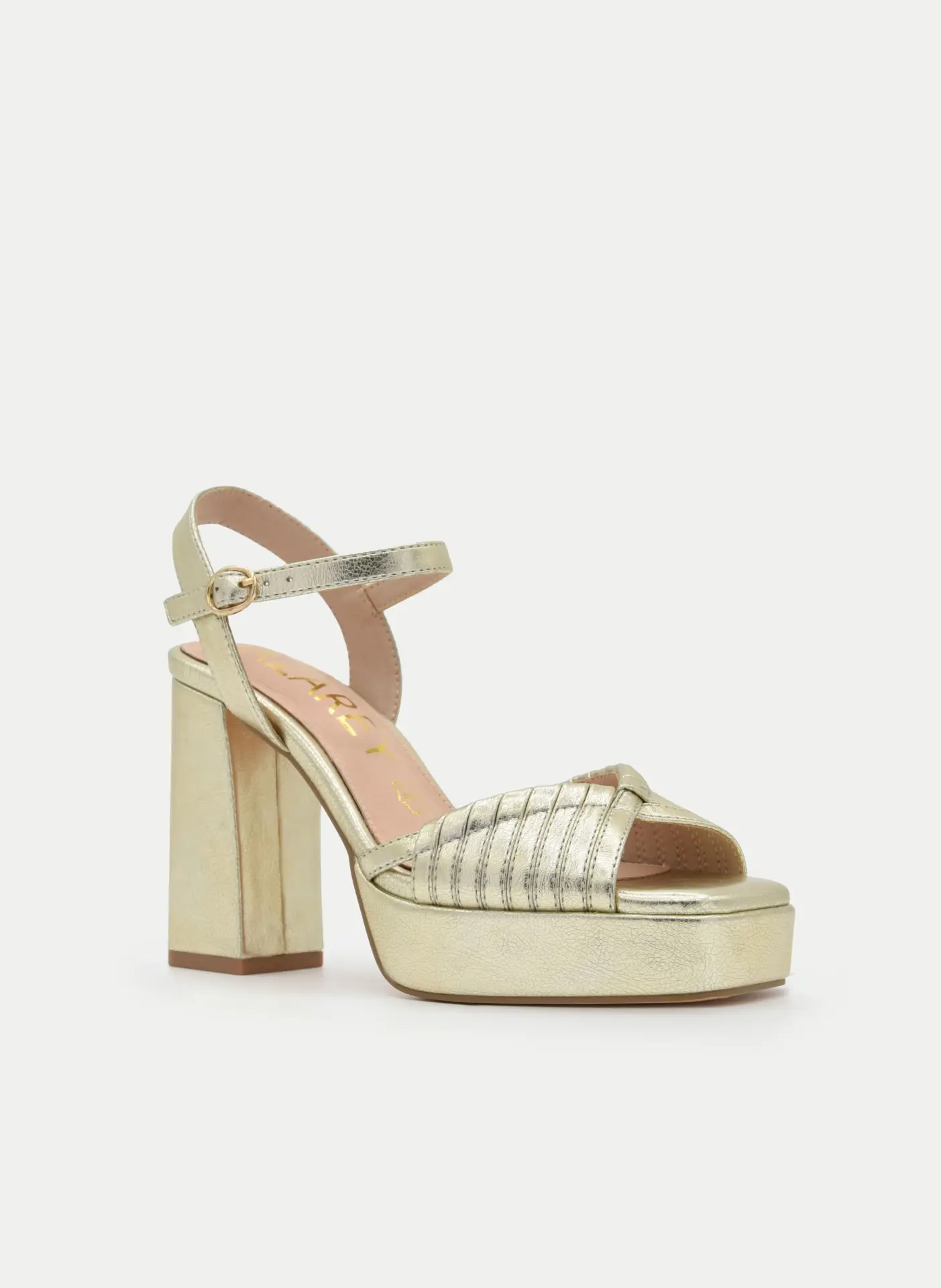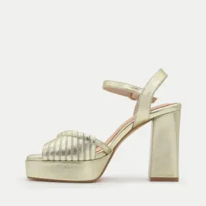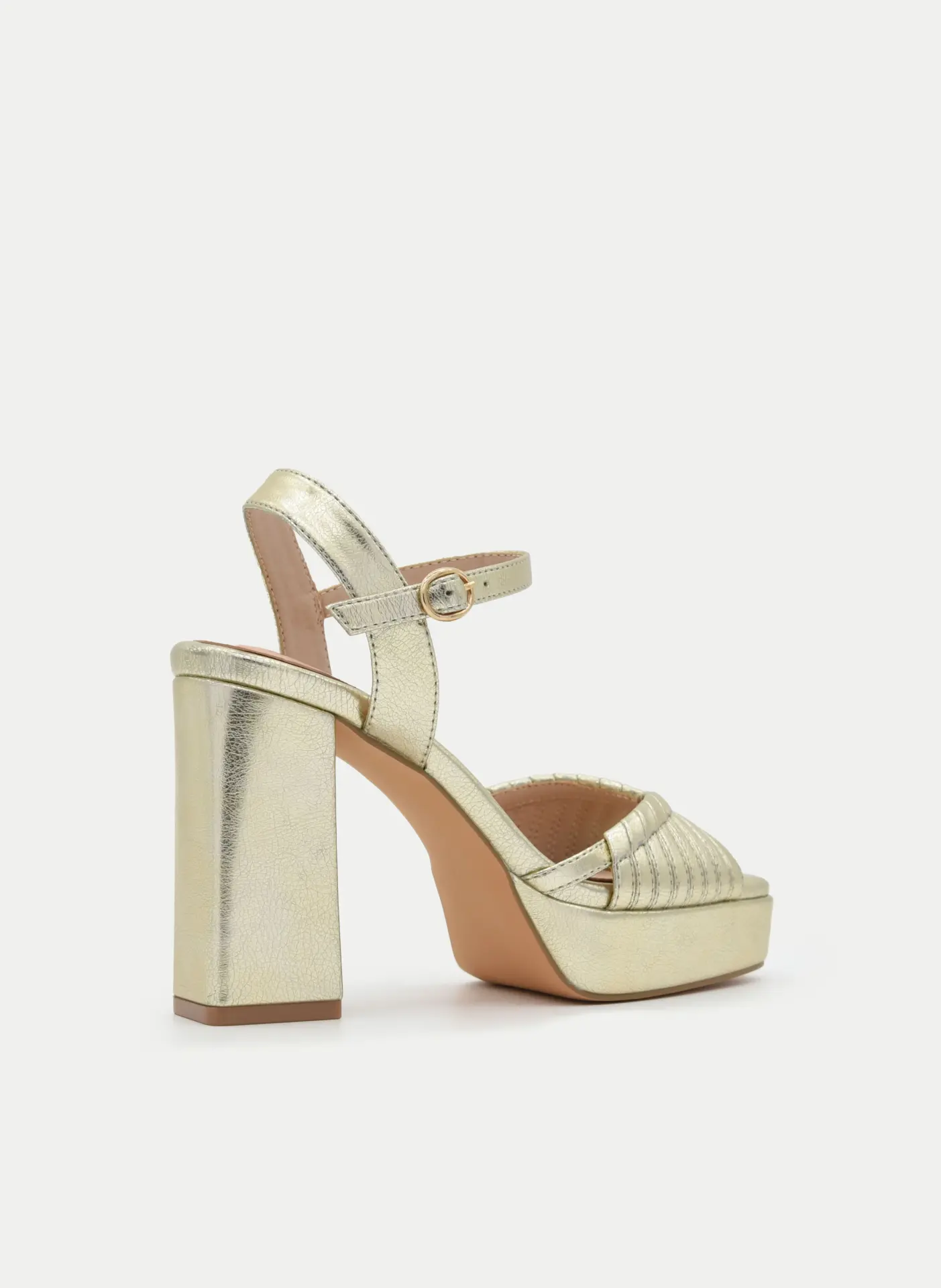 El tacón ancho proporciona una pisada firme y estable, mientras que la plataforma delantera equilibra la altura para caminar con seguridad durante horas. Ideal como sandalias elegantes, sandalias para bodas y sandalias para eventos, este modelo dorado realza cualquier look de fiesta con un toque refinado y actual.