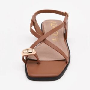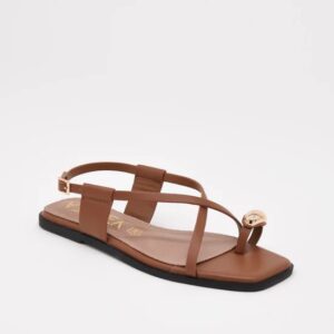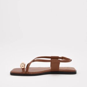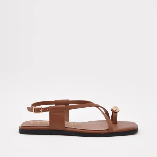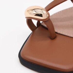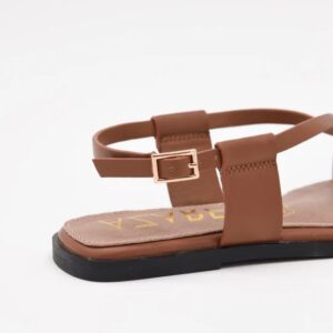 Estas sandalias planas color marrón ofrecen un diseño sencillo pero elegante con un toque moderno. Su detalle dorado minimalista en la parte frontal aporta un sutil toque de sofisticación, ideal para looks casuales o relajados. La suela acolchada garantiza comodidad durante todo el día, mientras que las tiras ajustables aseguran un ajuste perfecto. Versátiles y atemporales, son el complemento ideal para cualquier outfit veraniego.