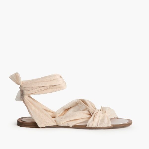 Sandalia plana. Corte de tiras. Cierre mediante lazo anudado al tobillo. Acabado en punta cuadrada.