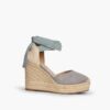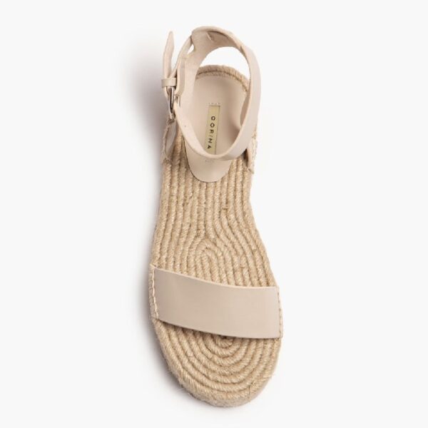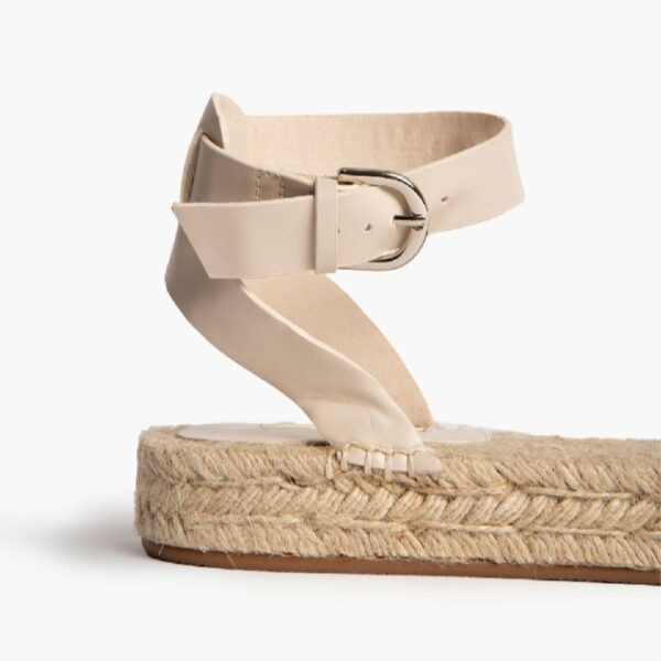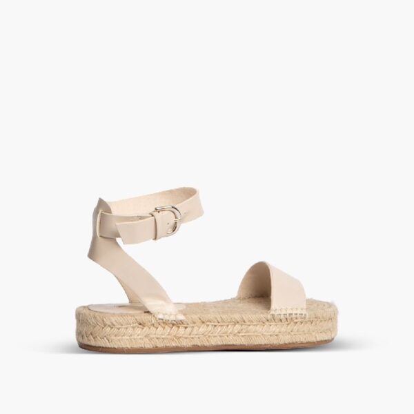 Sandalia plana en color crudo. Corte de pala fina y cierre mediante pulsera con hebilla al tobillo. Suela efecto yute con volumen.