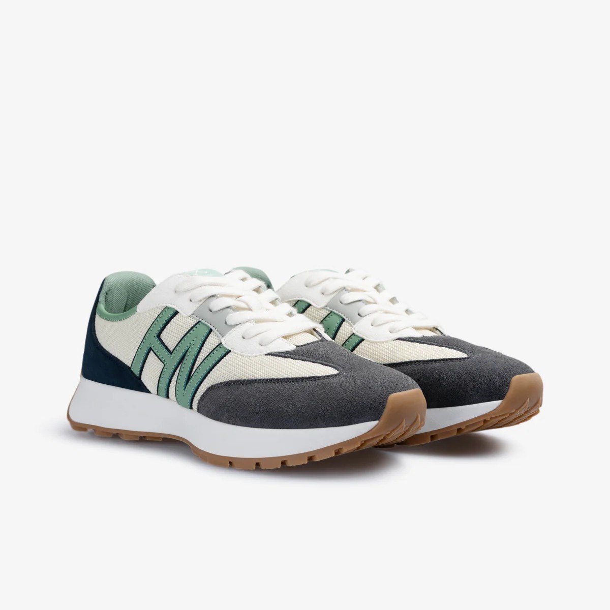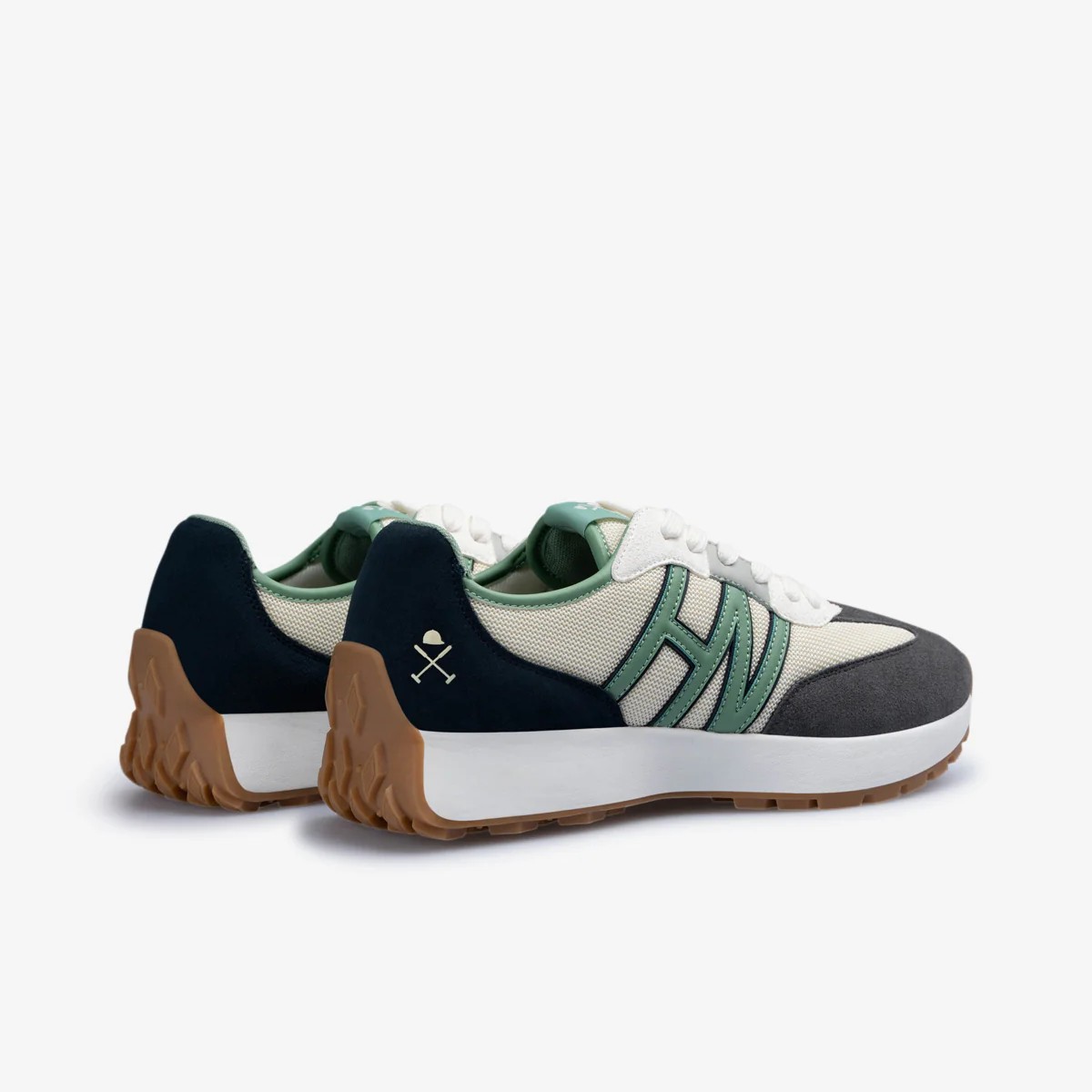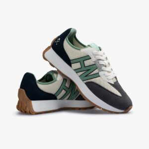Sneakers AGP de estilo retro-running. Diseñadas en una combinación de piel, serraje y malla técnica que aporta ligereza y transpirabilidad. Presentan una “H” lateral en contraste, detalles en el talón y lengüeta grabada. Su suela de goma dentada proporciona un agarre firme y un extra de confort para el uso diario.