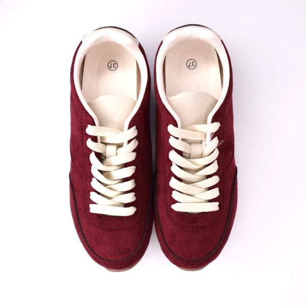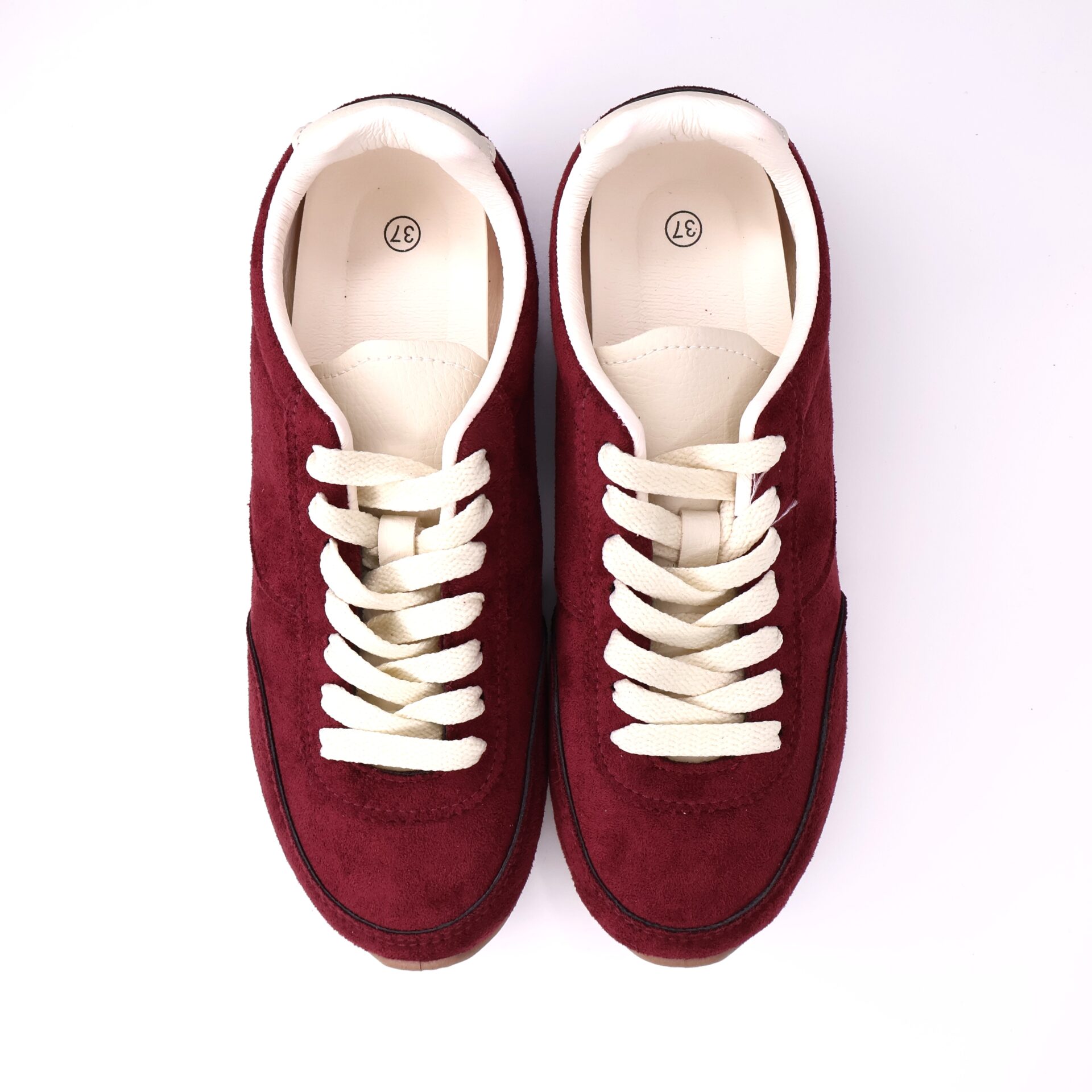 Zapatilla deportiva estilo casual confeccionada en ante de color burdeos. Cierre mediante cordones de siete pasadas. Corte en combinación de materiales y colores. Cordones en algodón.