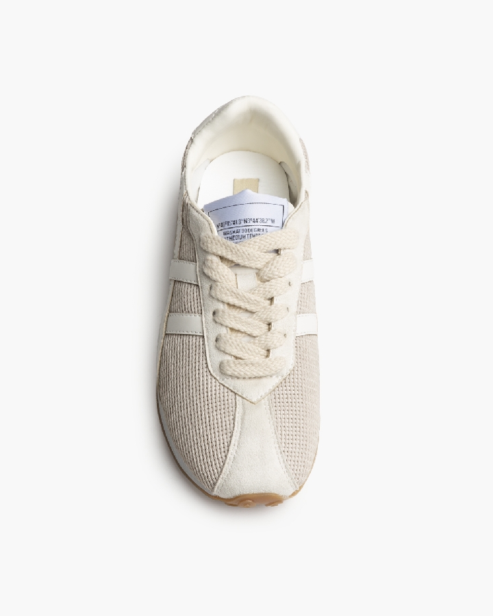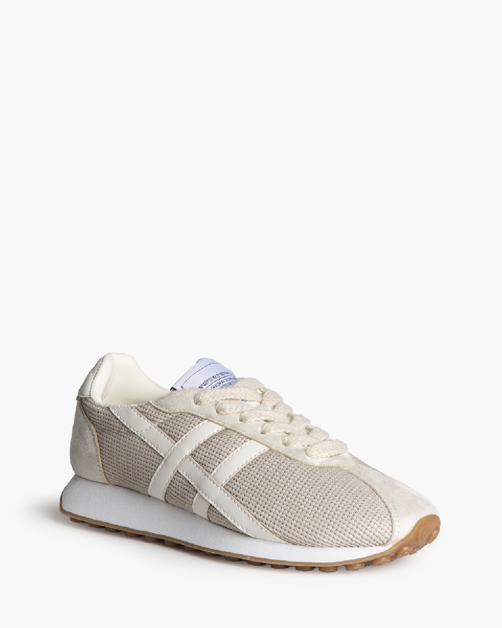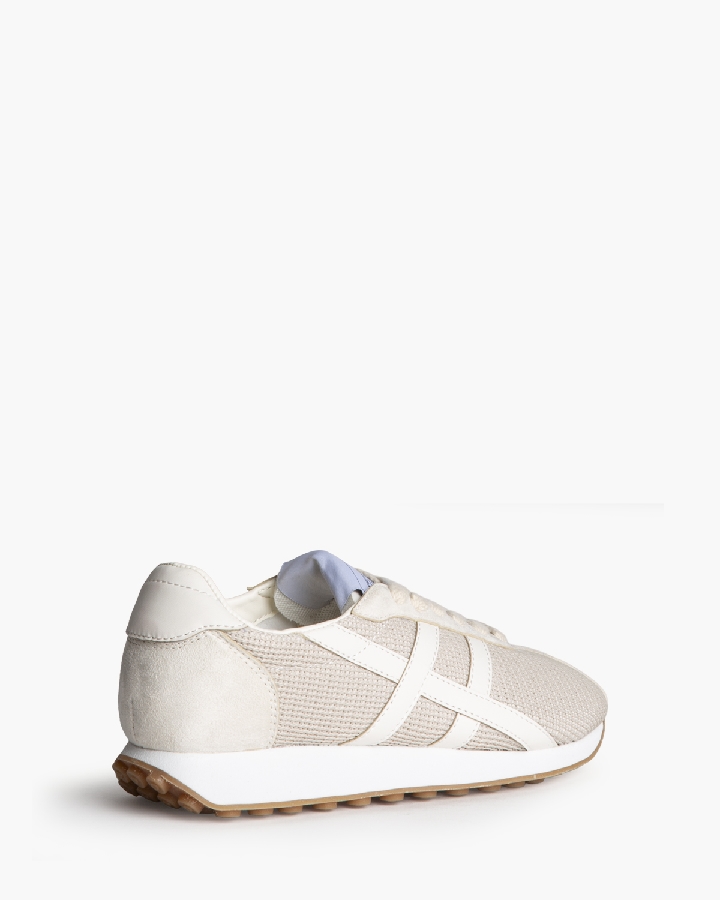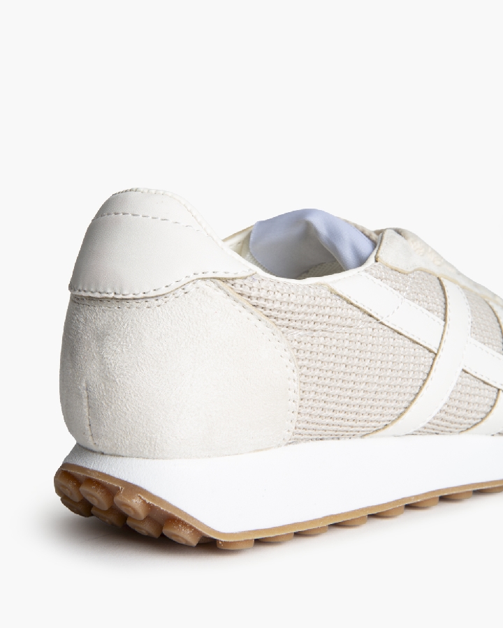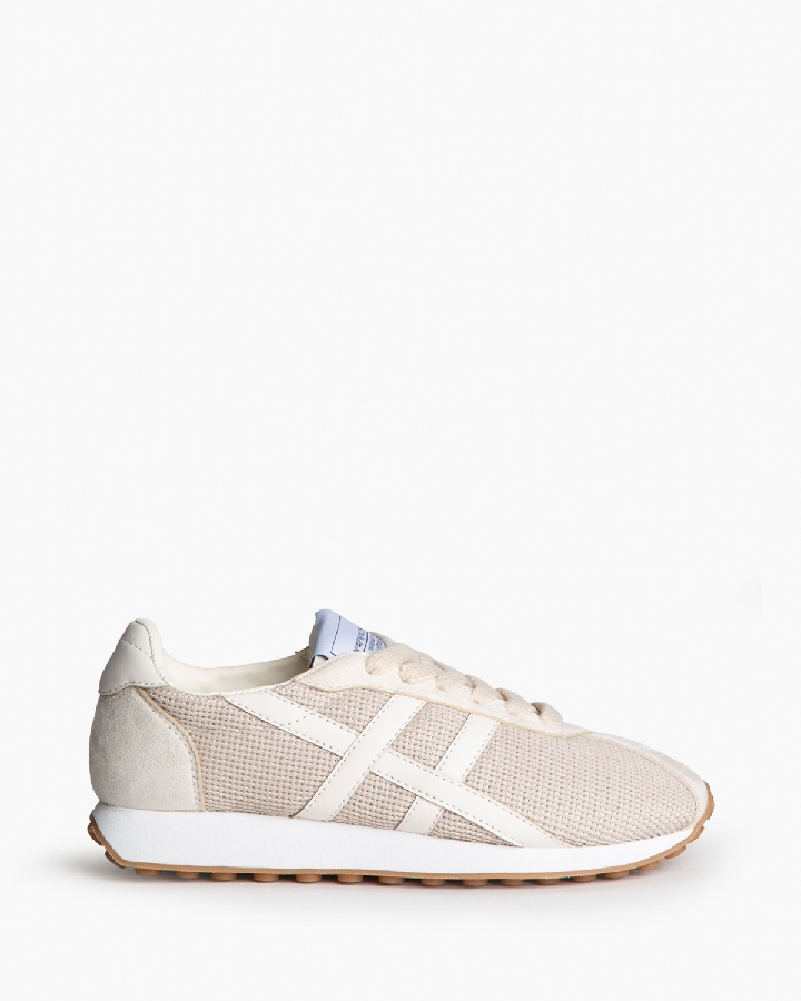 Zapatilla deportiva estilo retro en combinación de materiales. Cierre mediante cordones de seis pasadas.
