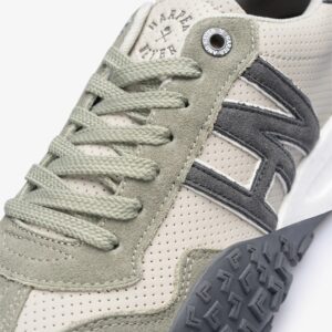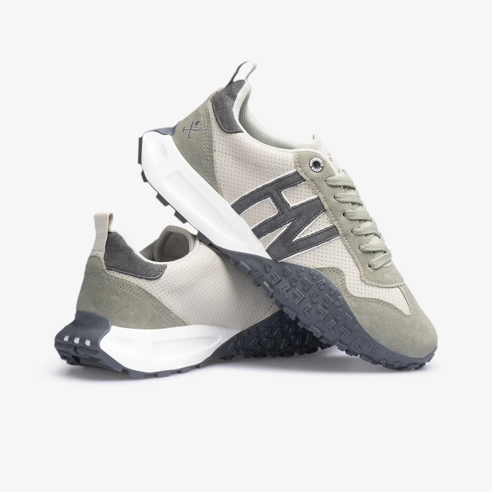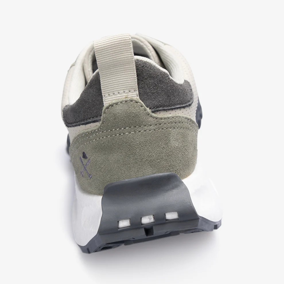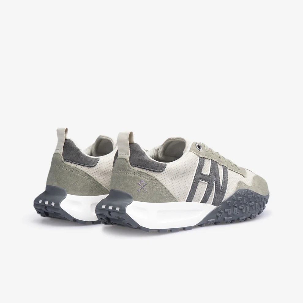 Zapatillas deportivas con diseño robusto y versátil. Confeccionadas en serraje combinado con paneles técnicos de nylon que aportan ligereza y transpirabilidad. Incluyen suela dentada de goma con gran agarre y el característico logo lateral en contraste. Pensadas para un look urbano con inspiración outdoor.