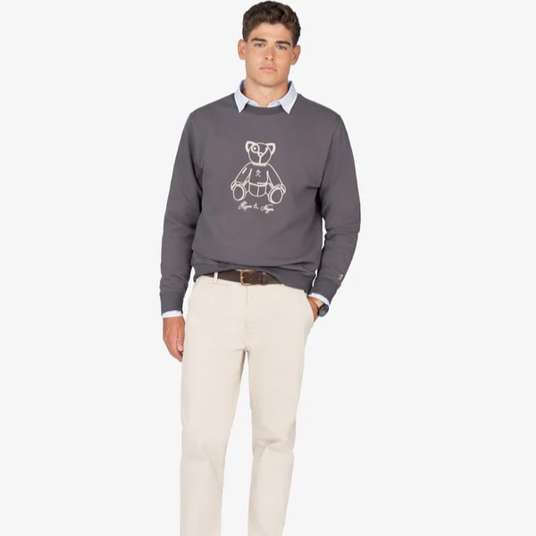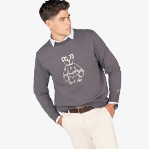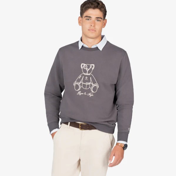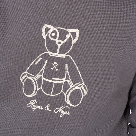 Confeccionada en mezcla de algodón, esta prenda de corte regular destaca por el bordado central de un oso ilustrado, acompañado del logo manuscrito de Harper & Neyer. Los acabados en puños, bajo y cuello mantienen el look pulido y atemporal.