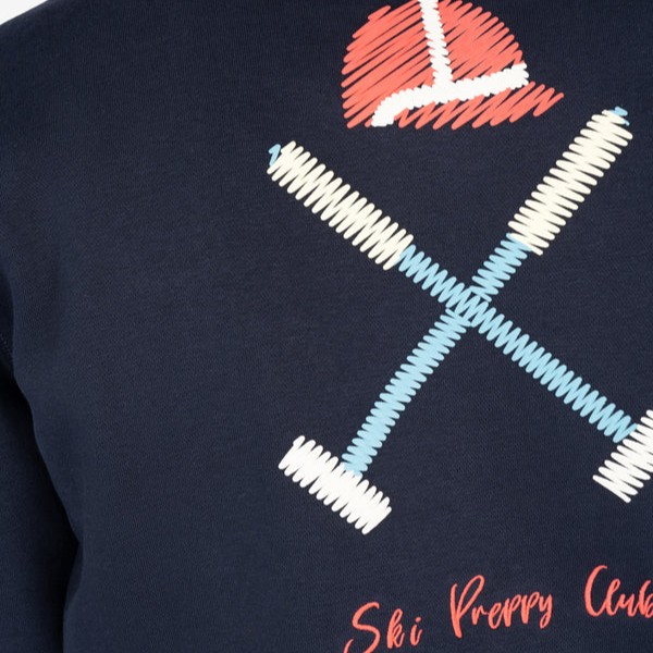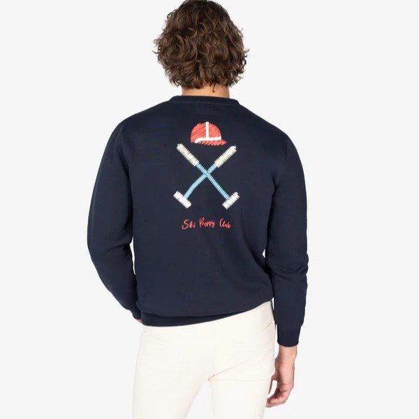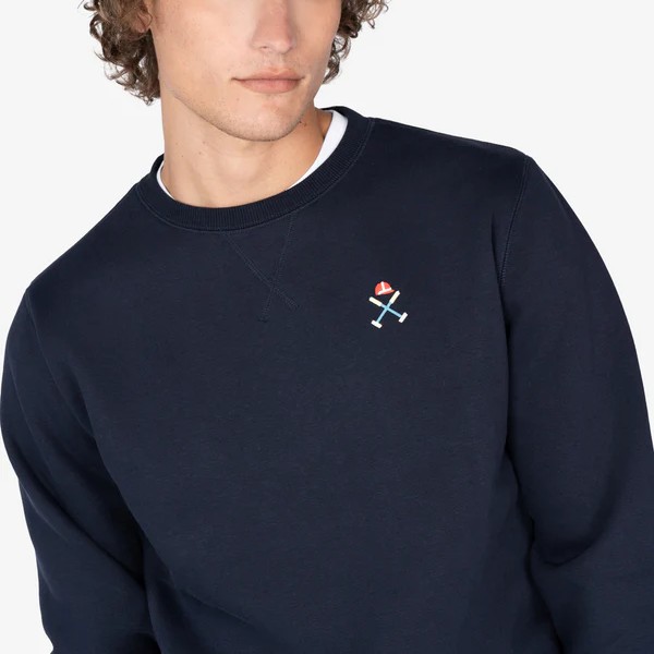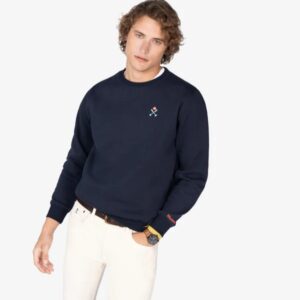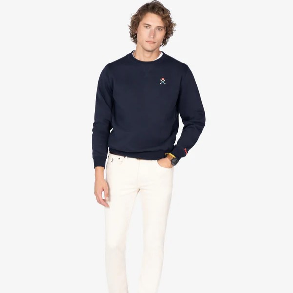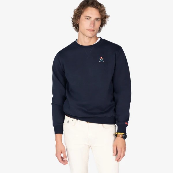 Sudadera básica de cuello redondo confeccionada en mezcla de algodón, con acabados acanalados en contraste y bordado frontal minimalista. La espalda revela un bordado con el logo en colores a contraste.