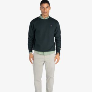 Su corte es recto y cómodo, con acabados en canalé en cuello, puños y cintura. Ideal para quienes buscan un look deportivo refinado con esencia preppy.