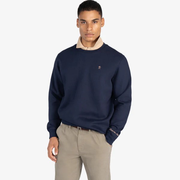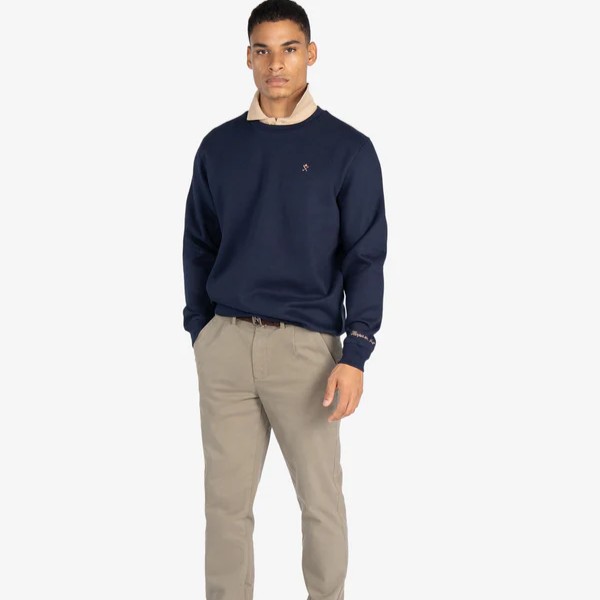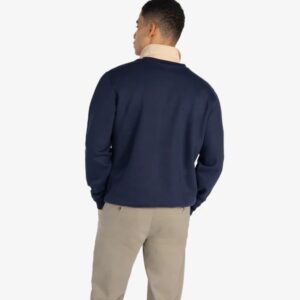 Su corte es recto y cómodo, con acabados en canalé en cuello, puños y cintura. Ideal para quienes buscan un look deportivo refinado con esencia preppy.
