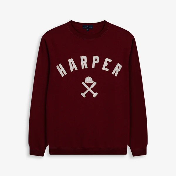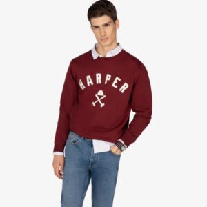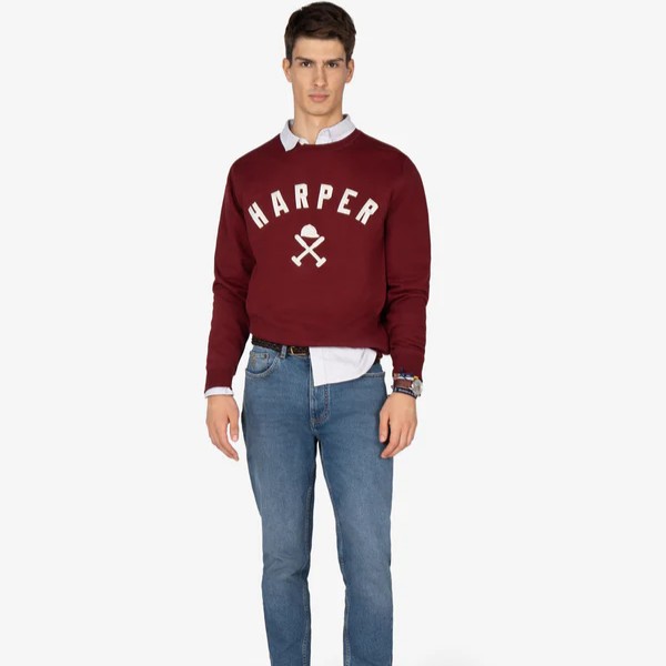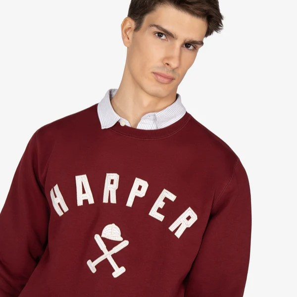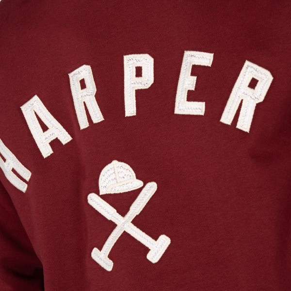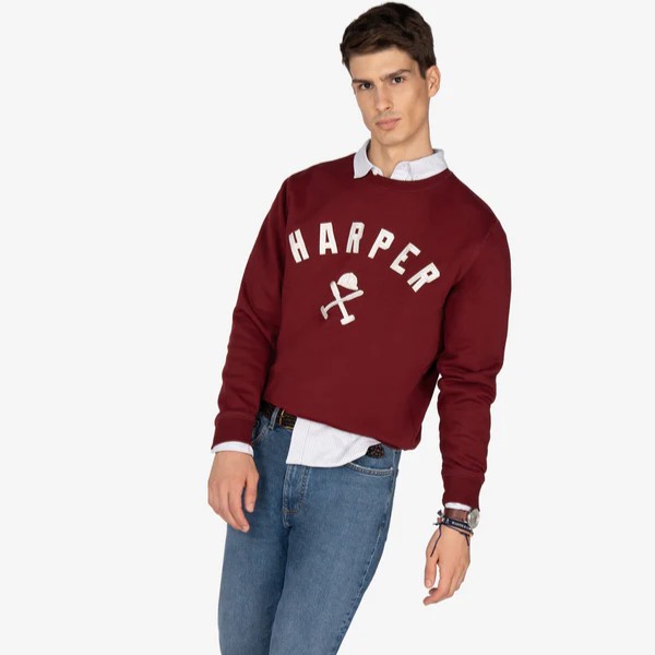Sudadera tipo college con logo bordado. Inspirada en las universidades del este americano, esta sudadera perchada incorpora el nombre “HARPER” en tipografía varsity y nuestro logo en el centro.