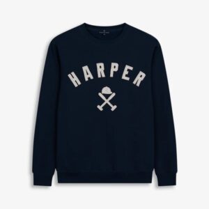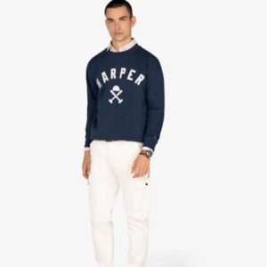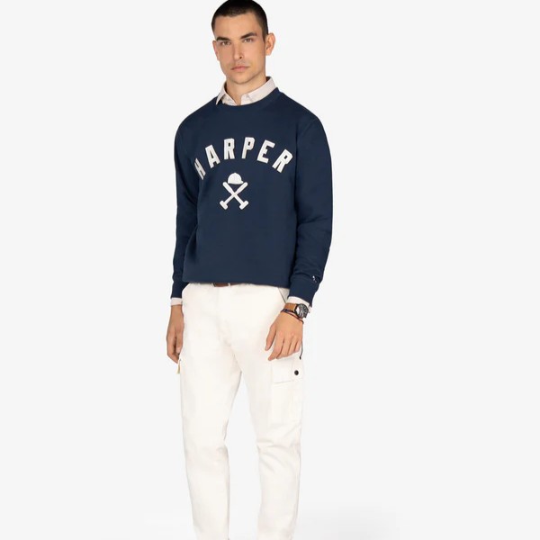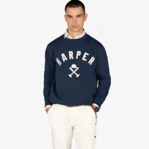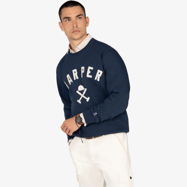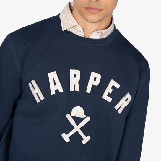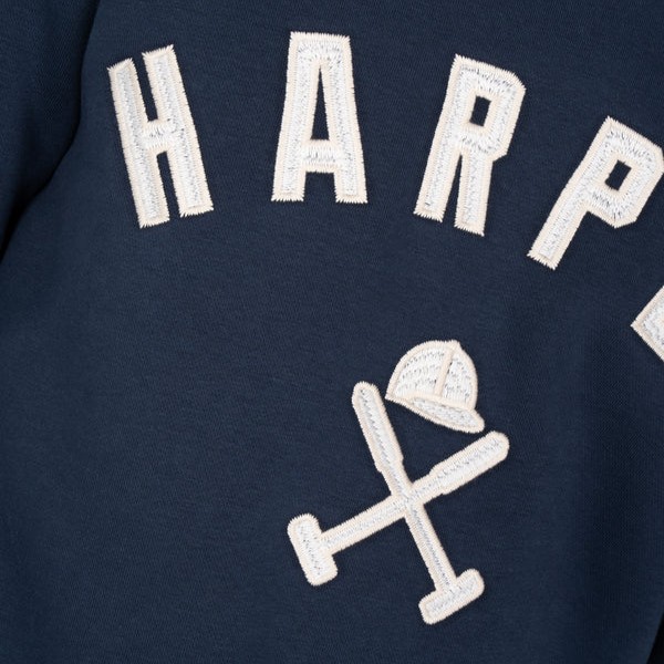 Sudadera tipo college con logo bordado. Inspirada en las universidades del este americano, esta sudadera perchada incorpora el nombre “HARPER” en tipografía varsity y nuestro logo en el centro.