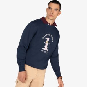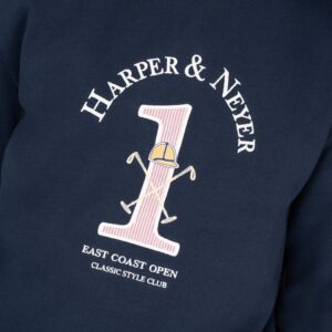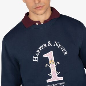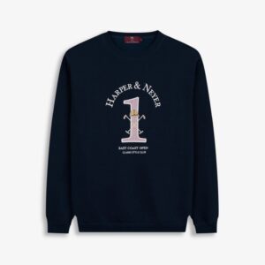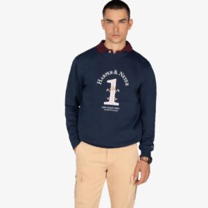 Sudadera con cuello redondo y bordado central de inspiración victory ridge. Confeccionada en algodón suave, esta prenda destaca por su diseño con el número 1 y el logo de Harper & Neyer, homenajeando el espíritu competitivo y elegante del universo Victory Ridge.