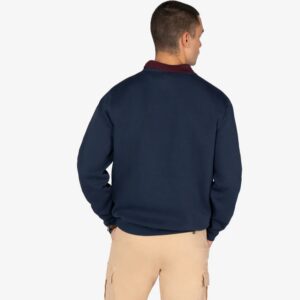 Su corte es recto y cómodo, con acabados en canalé en cuello, puños y cintura. Ideal para quienes buscan un look deportivo refinado con esencia preppy.