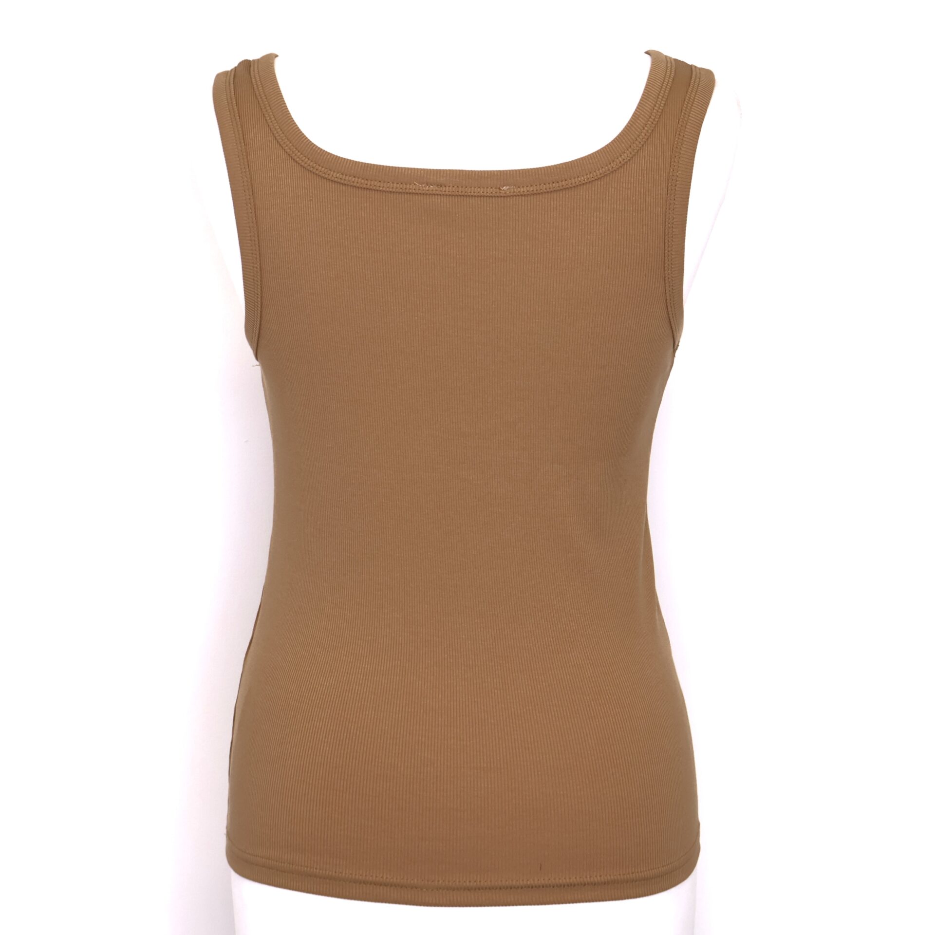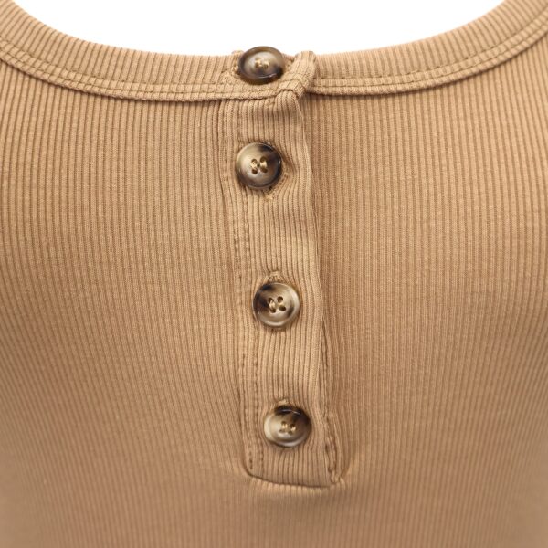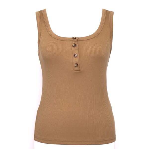 Top camel con tirante ancho. Confeccionado en tejido de punto elástico. Escote redondo acabado con botones.