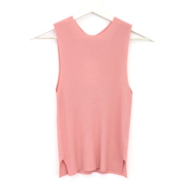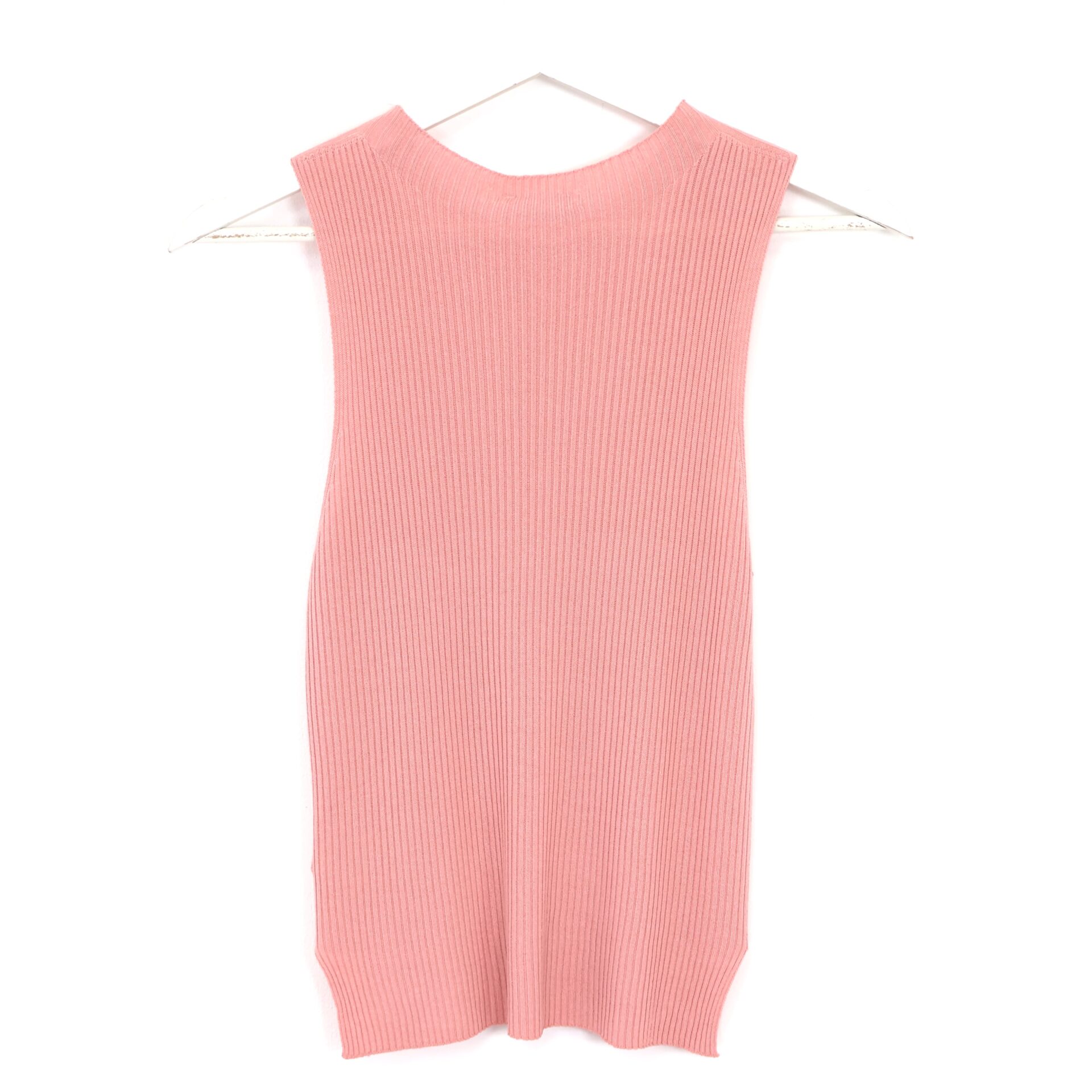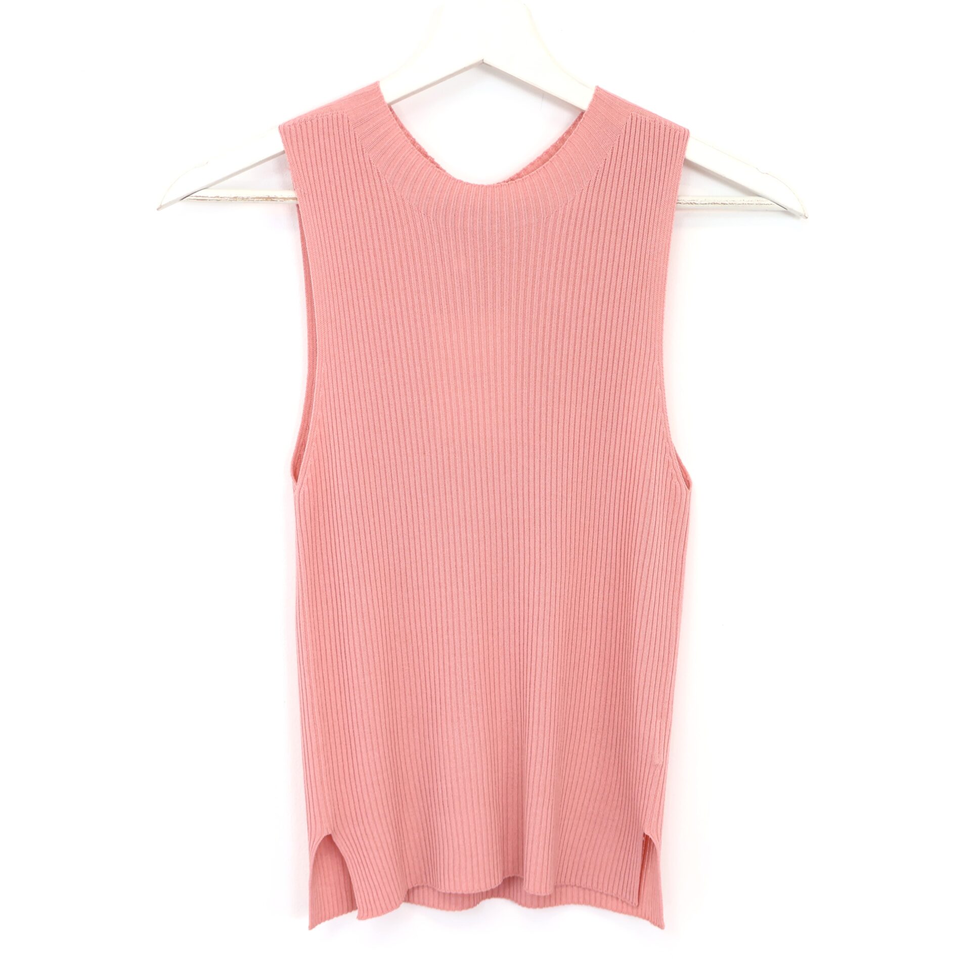Top de tirantes confeccionado en tejido elástico de canalé en color rosa con escote redondo. Aberturas laterales.