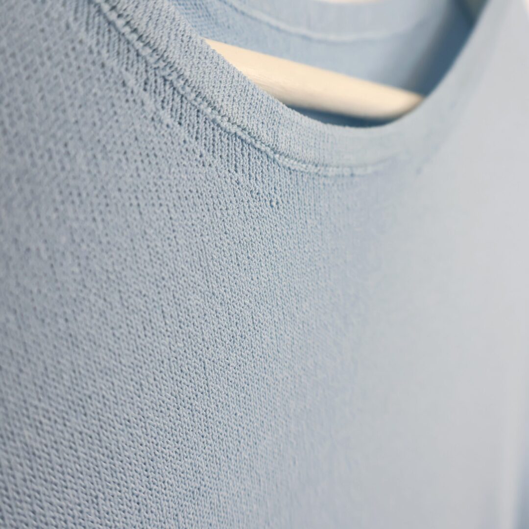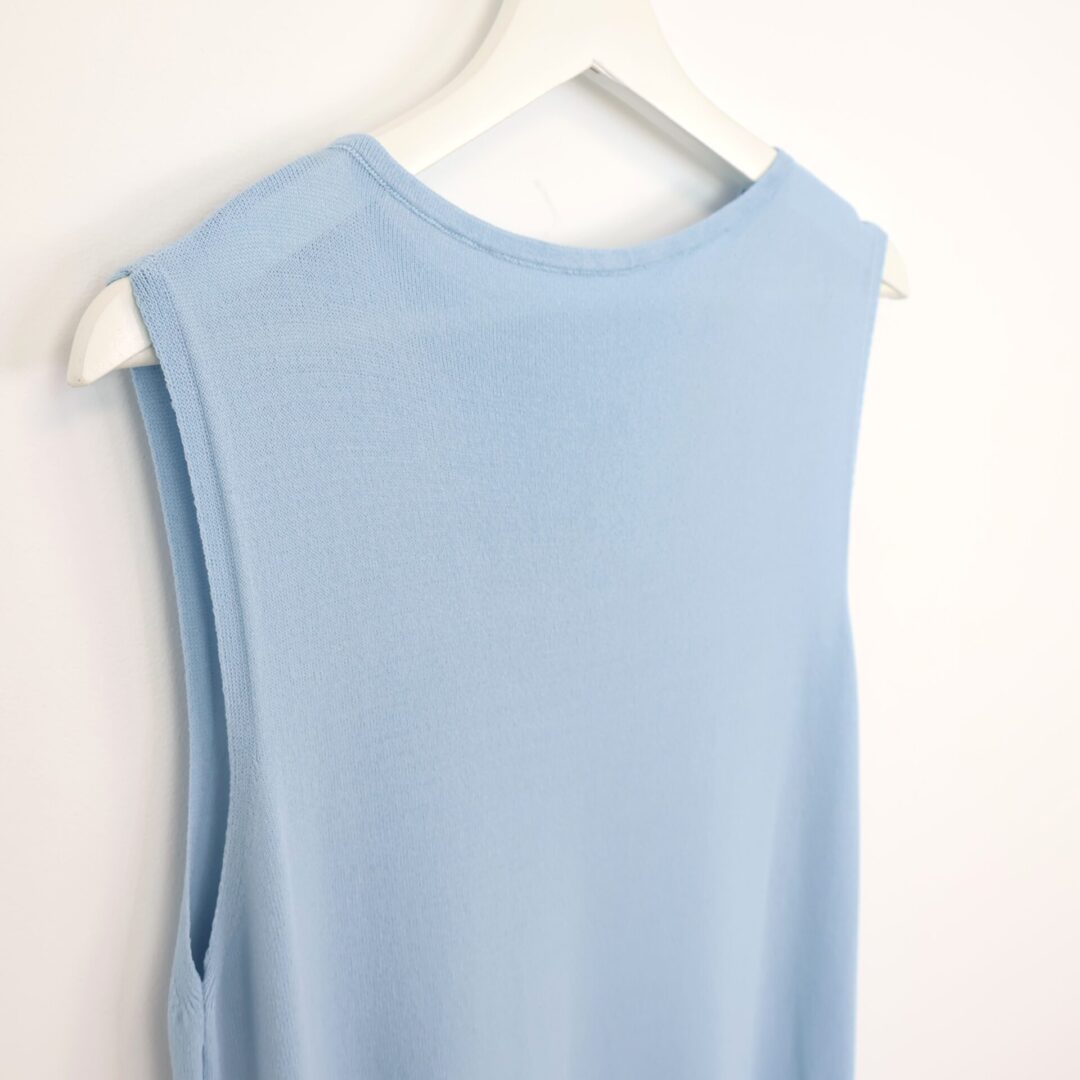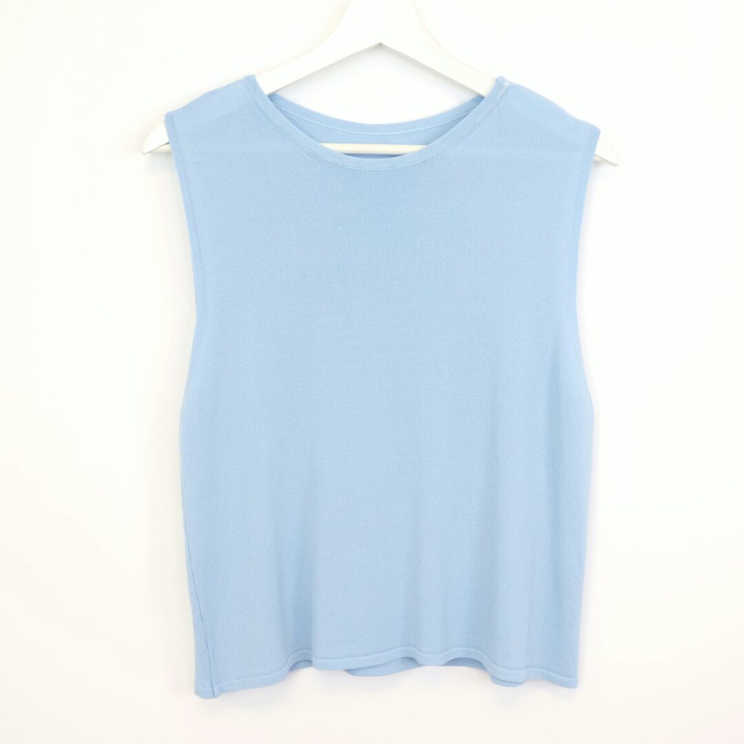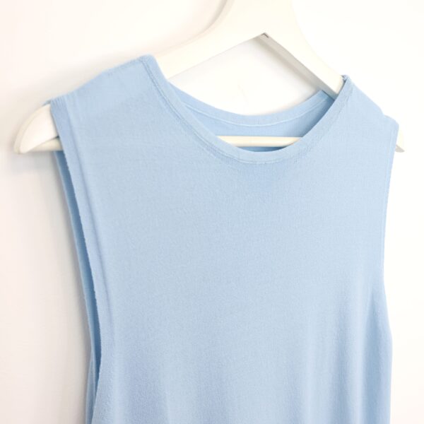 Top sin mangas confeccionado en punto de color azul celeste. Tejido elástico. Cuello redondo,
