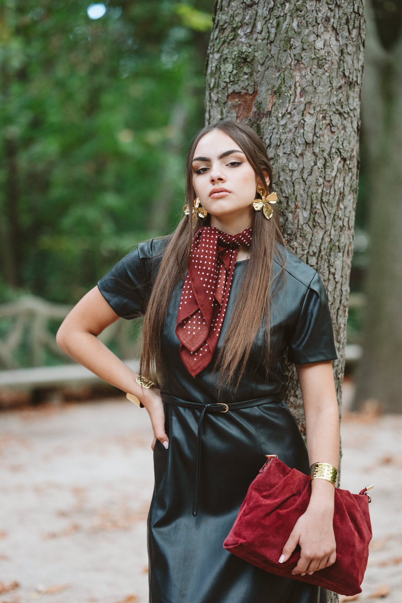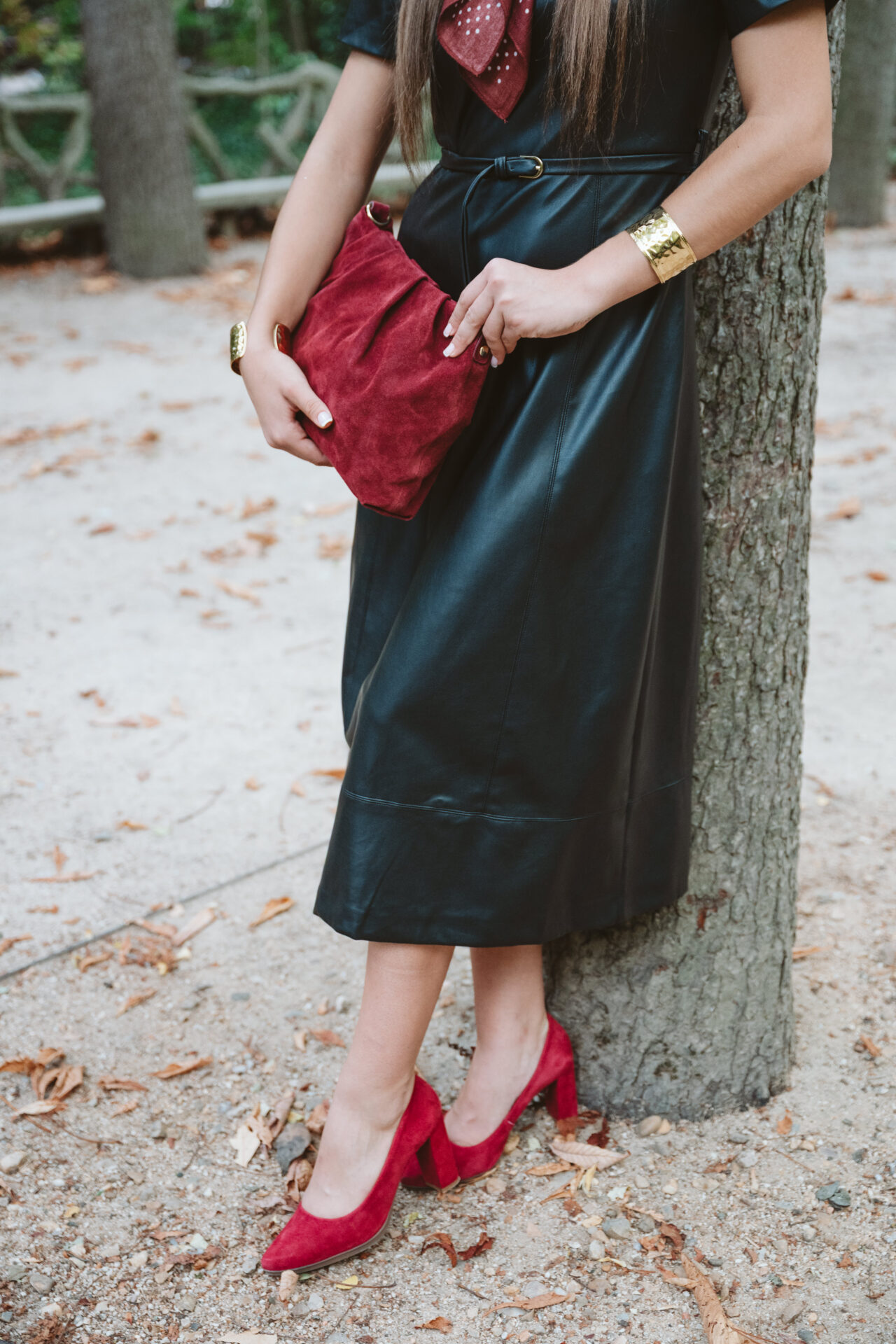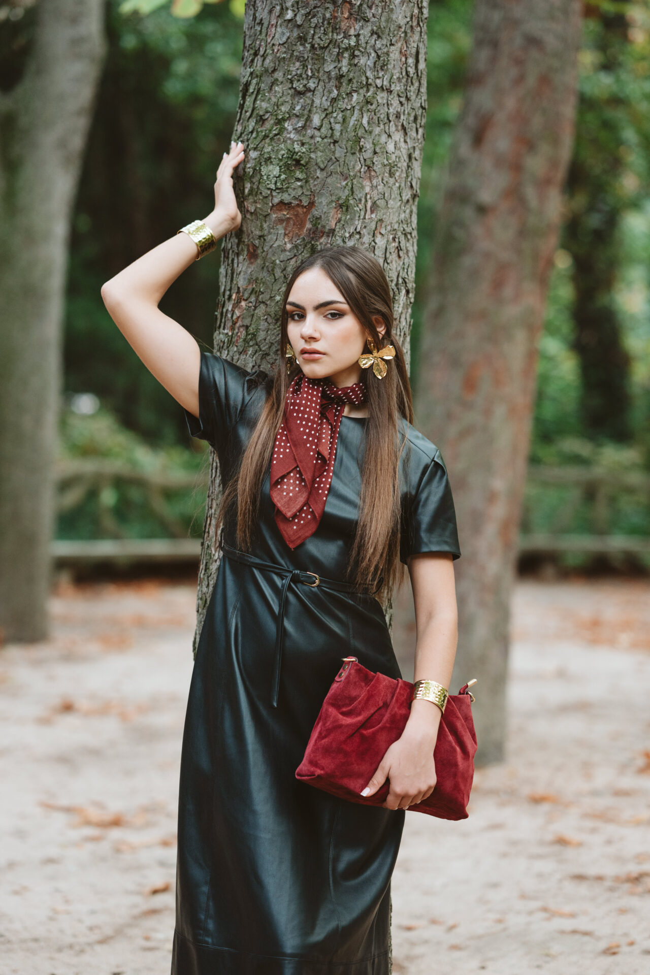 Vestido de manga corta y corte midi confeccionado en piel sintética en color negro. Cinturón incluido, el cual permite ajustar un poquito la cintura. Cierre trasero con cremallera invisible.