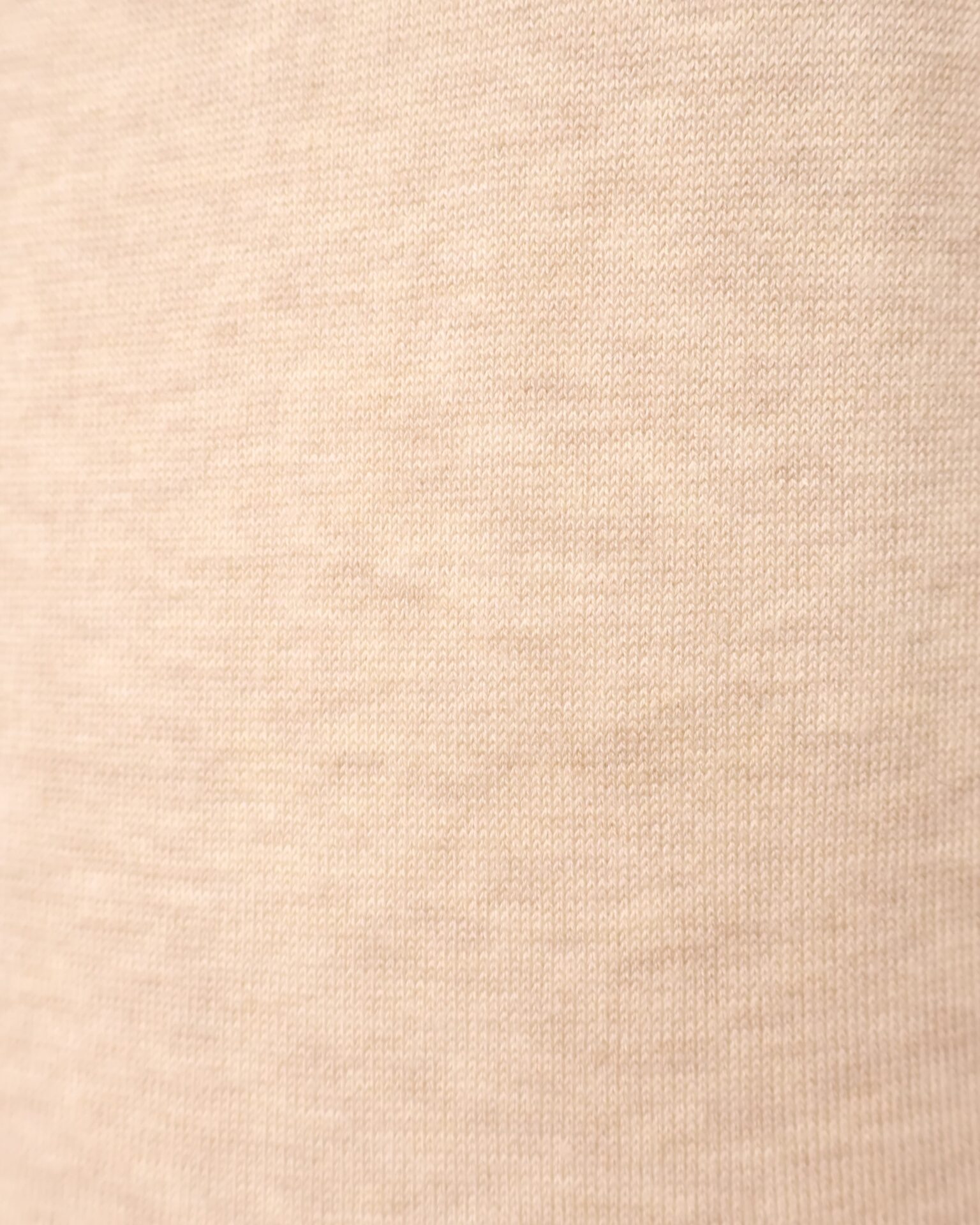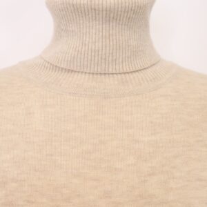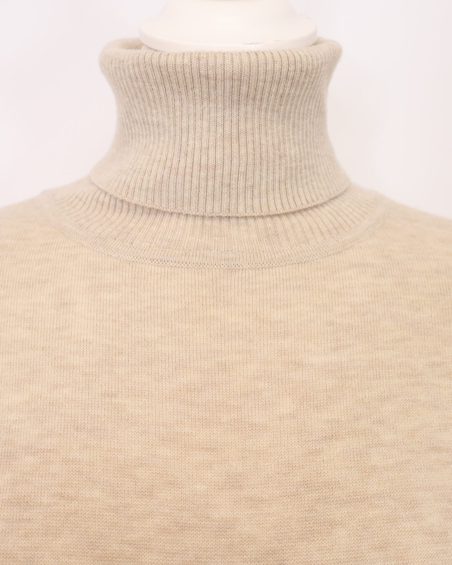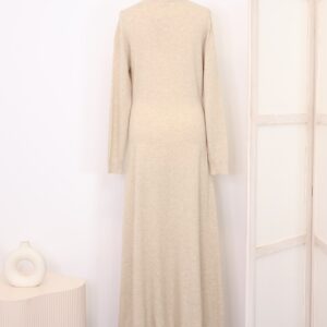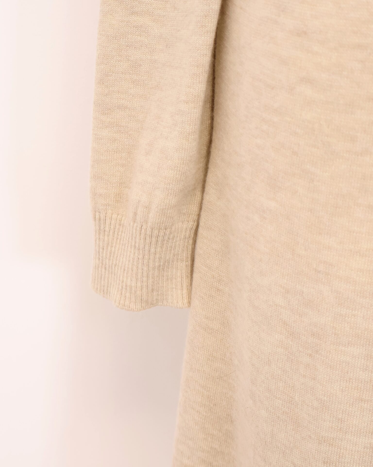 Vestido beige confeccionado en tejido de punto elástico con cuello vuelto.